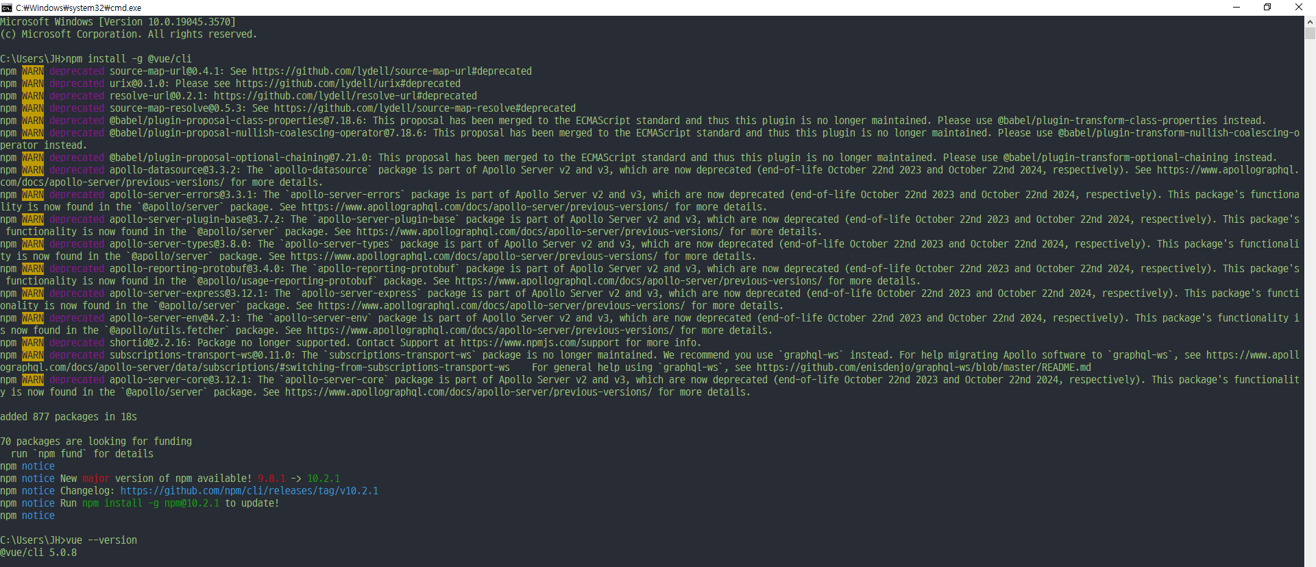 💡npm install -g @vue/cli