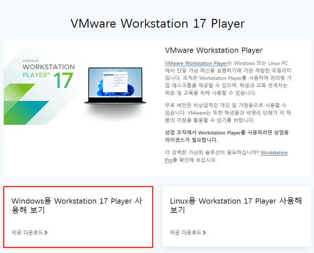 VMware Workstation Player(무료 버전) 설치 방법