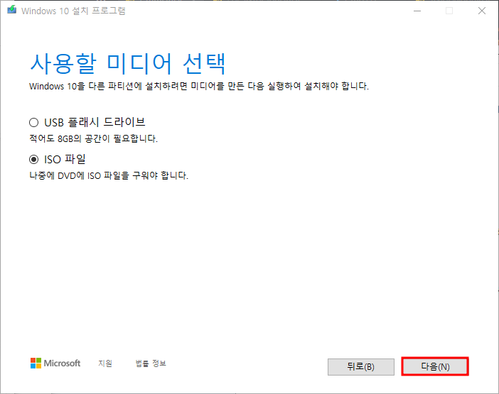 *Windows10.iso 파일이 이미 있다면 다음 진행
