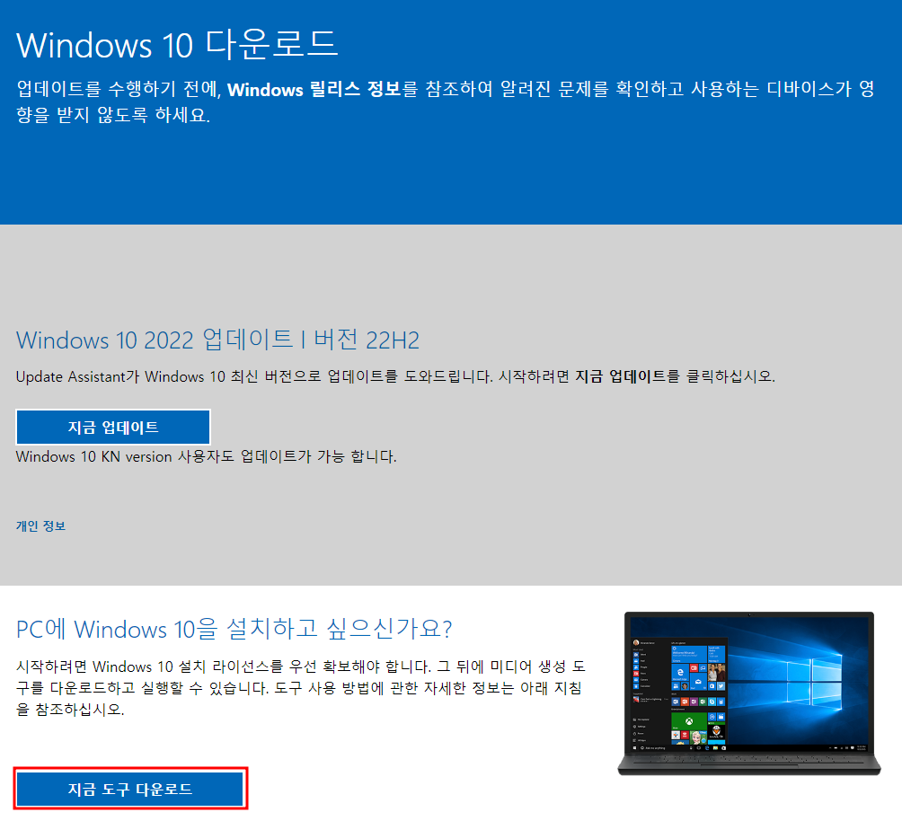 Windows10 설치 파일(Windows10.iso) 생성 방법과