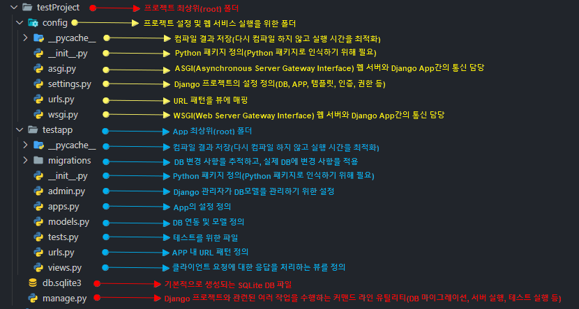 *Django Project 생성 시 명칭을 config로 하고, 생성 후 프로젝트 루트 디렉터리 명 변경하는 것을 추천