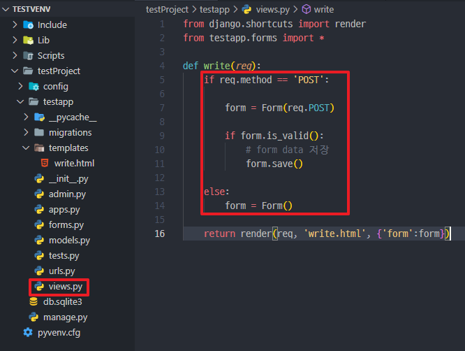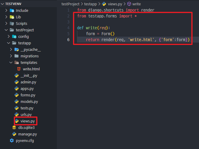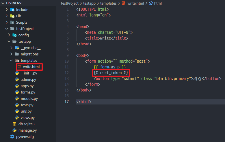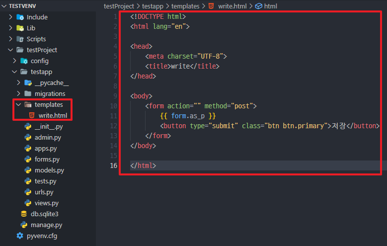 *templates 폴더를 생성하고 write.html 파일 생성