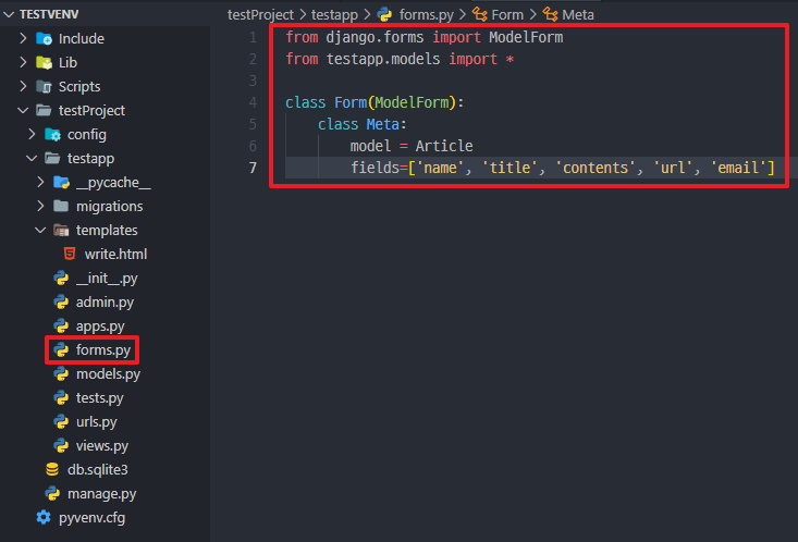 *testapp의 Model을 가져와 Form() 생성