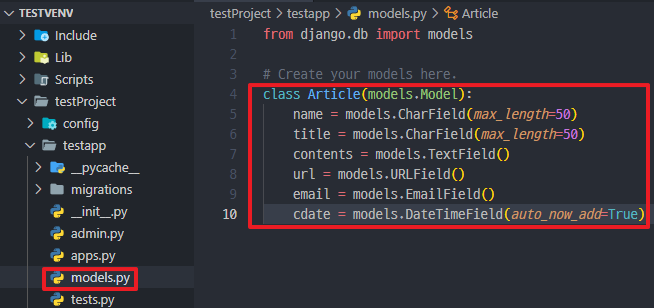 ① Django App Model 생성