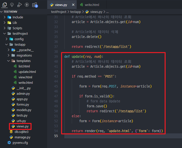 *Django 기초 예제 - 게시판(삭제)에 이어서 진행