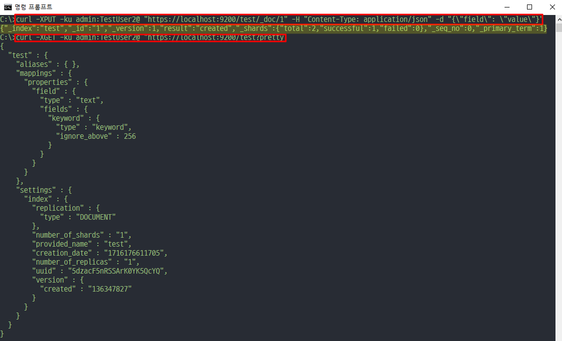 💡curl -XGET -ku admin:TestUser2@ "https://localhost:9200/test?pretty