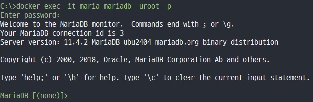 💡 docker run -p 3306:3306 --name maria -e MARIADB_ROOT_PASSWORD=1234 -d mariadb