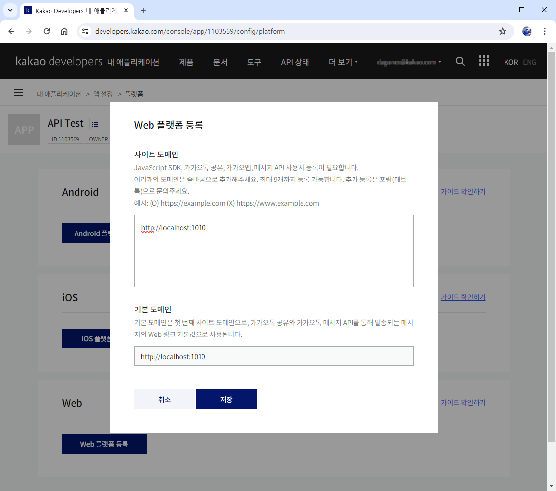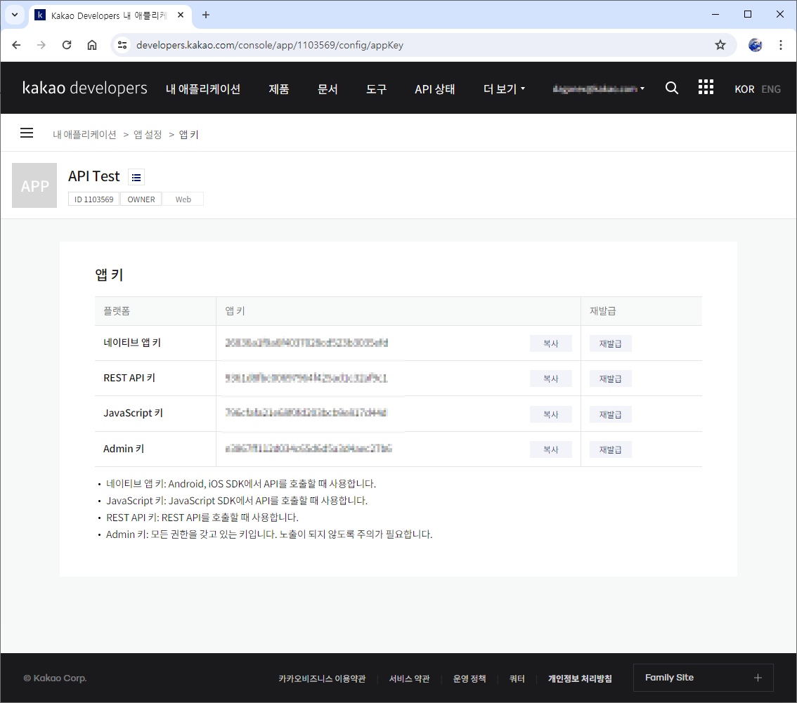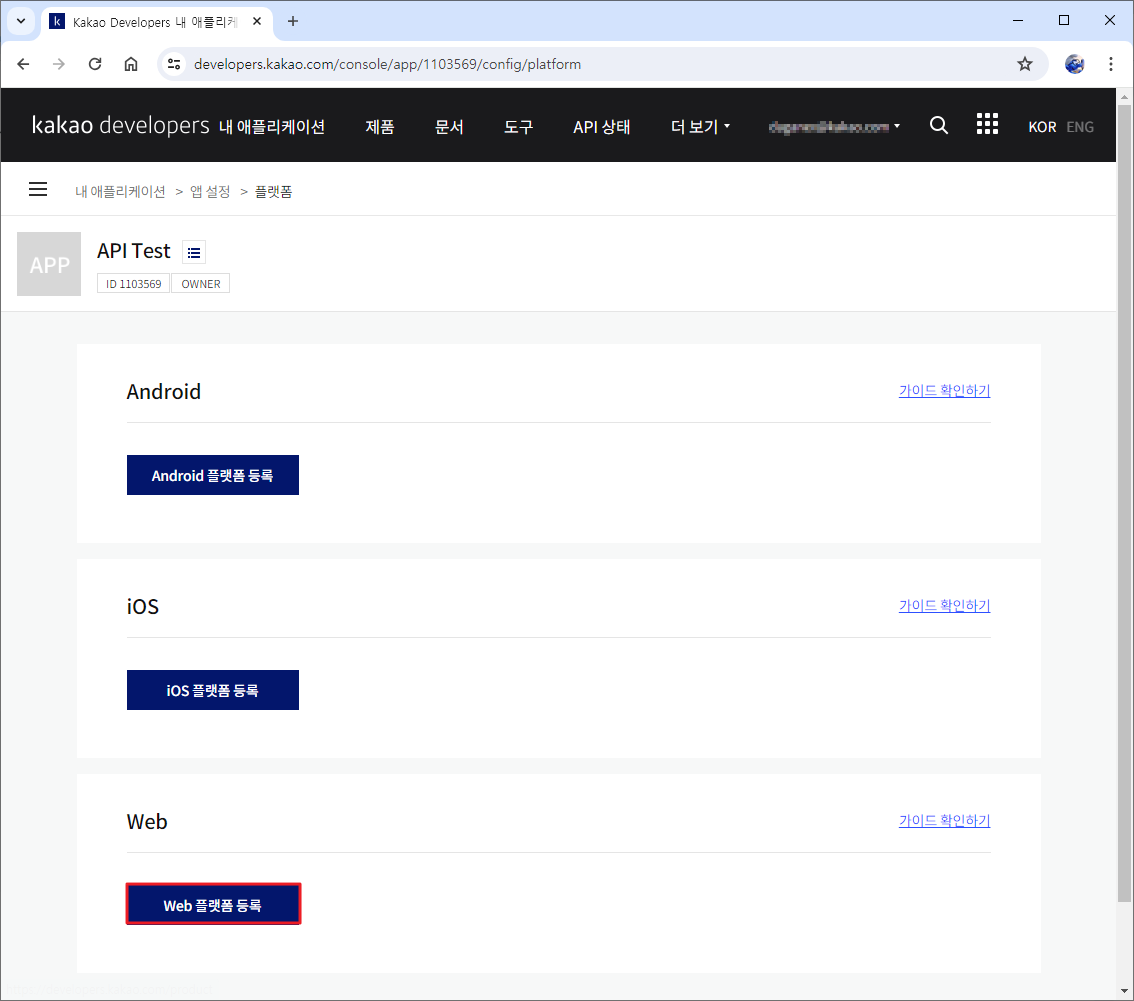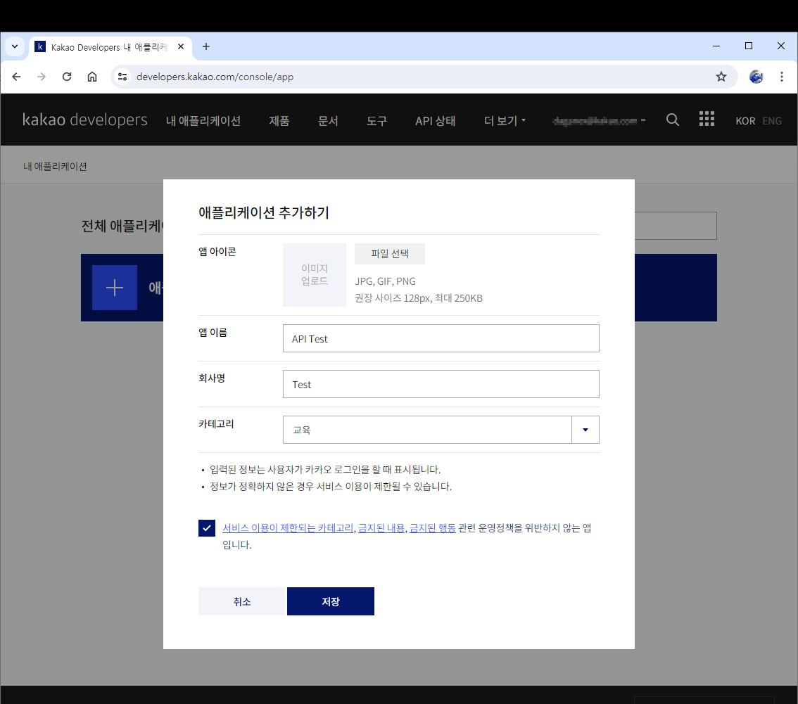 카카오 Open API를 사용하기 위한 카카오 developers 앱 등록