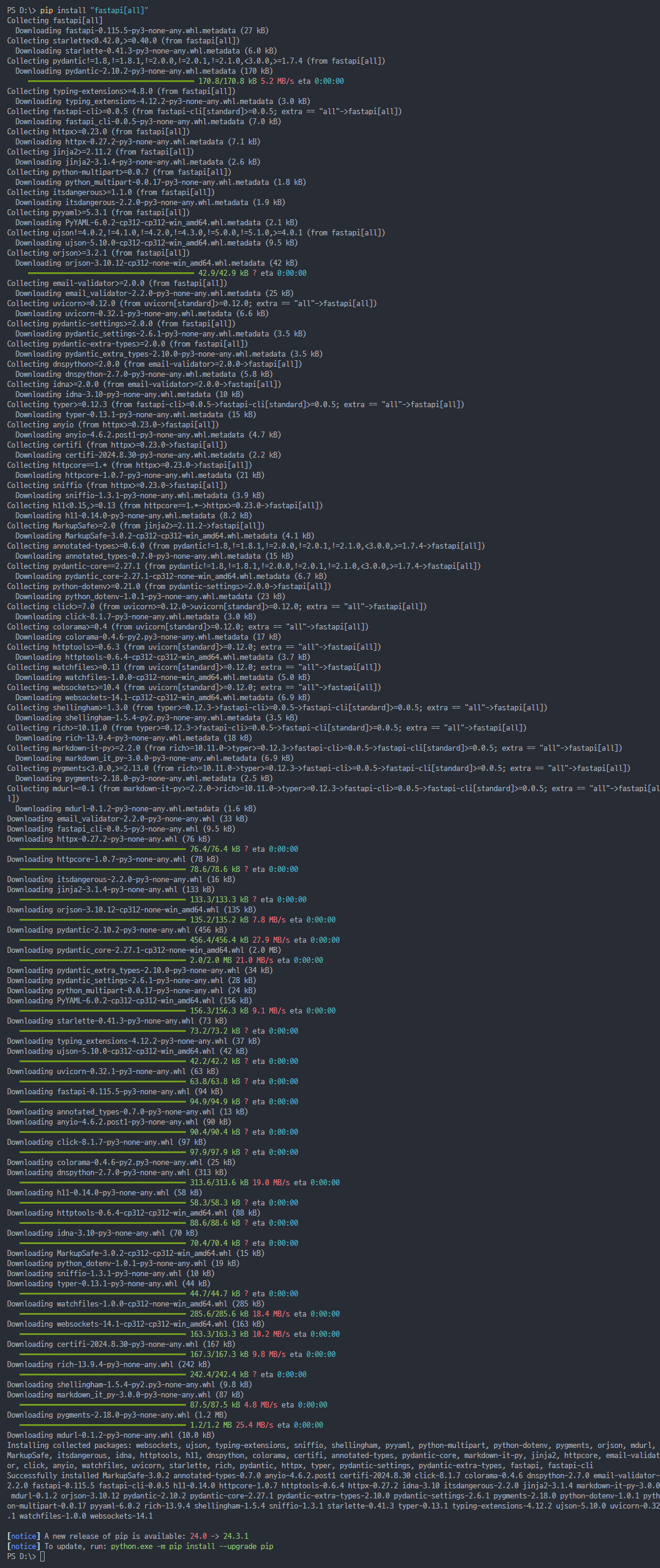 > pip install "fastapi[all]"