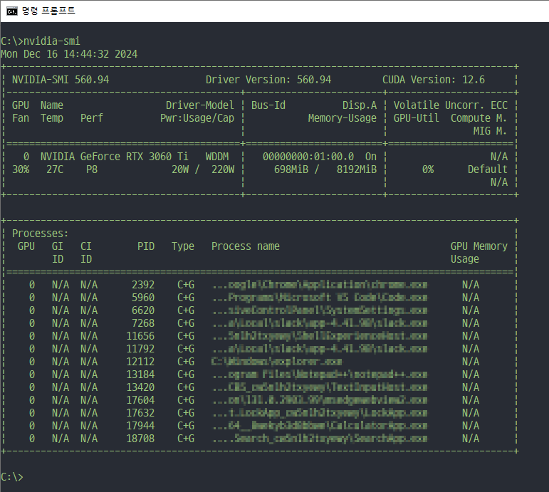 ▷ NVDIA GPU 드라이버 확인