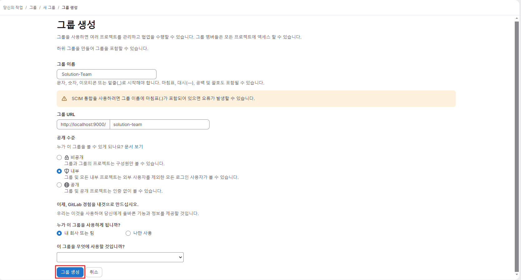 ▷ GitLab 그룹 생성