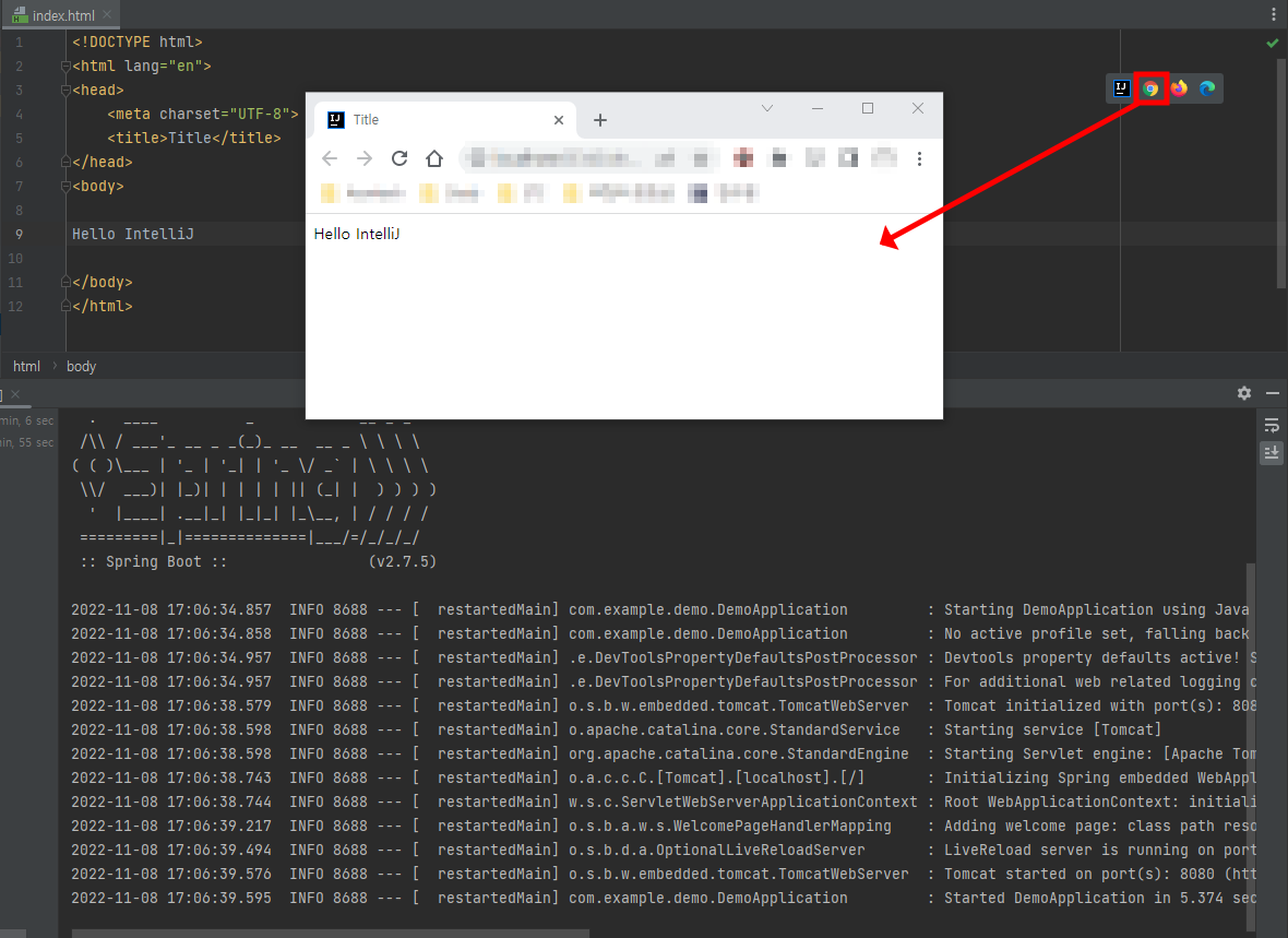 * 간단하게 프로젝트 생성 후 실행 결과 확인