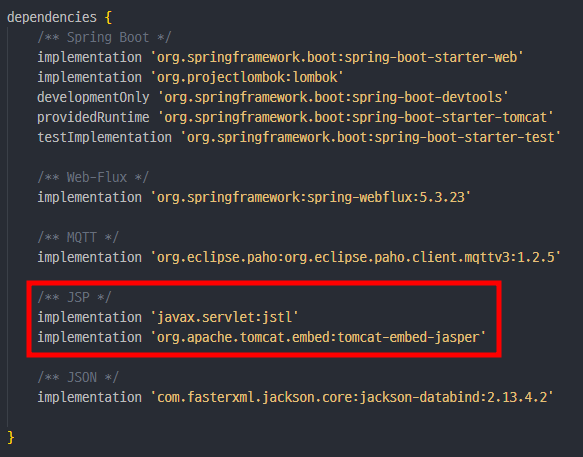 implementation 'org.apache.tomcat.embed:tomcat-embed-jasper'