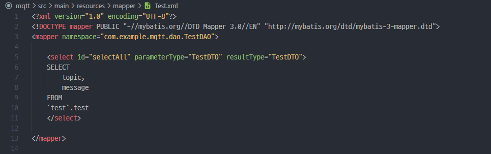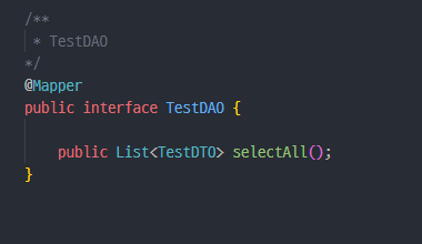 *TestDAO.java 에서 @Mapper로 지정 했고, .xml에 mapper namespace를 Class Name 으로 사용