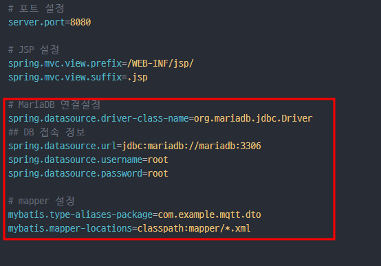 *mybatis.type-aliases-package : xml에서 DTO(parameterType, resultType)를 짧게 쓰기 위한 설정