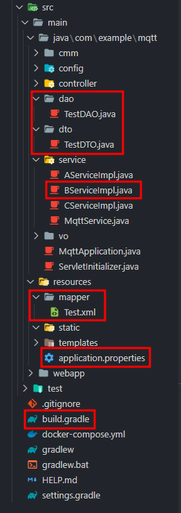 WebFlux를 적용한 MQTT Client를 구축하고 Topic 메시지 도착 시 Callback으로 Bean을 통해 서비스 구분 *Mqtt Broker(mosqitto) 아래 관련 글 참고 *자세한 설명 생략 ▷ Project 전체 구조 *파일 이름으로 검색 가능