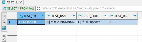 TEST_NAME = '테스트2308020002' , TEST_CODE = '테스트-Update', TEST_USE = '2';