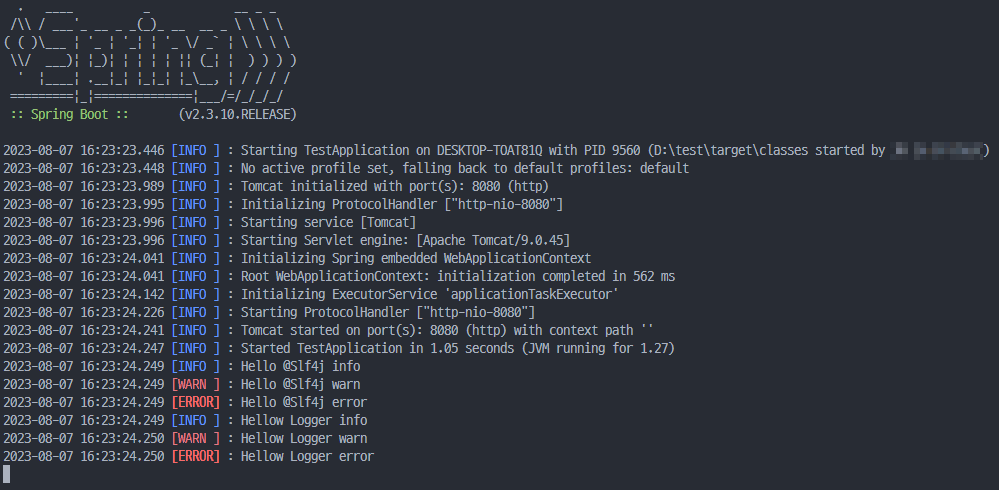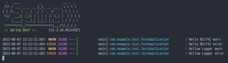 spring-boot-starter 에는 SLF4J와 Logback이 기본으로 설정 돼있다.