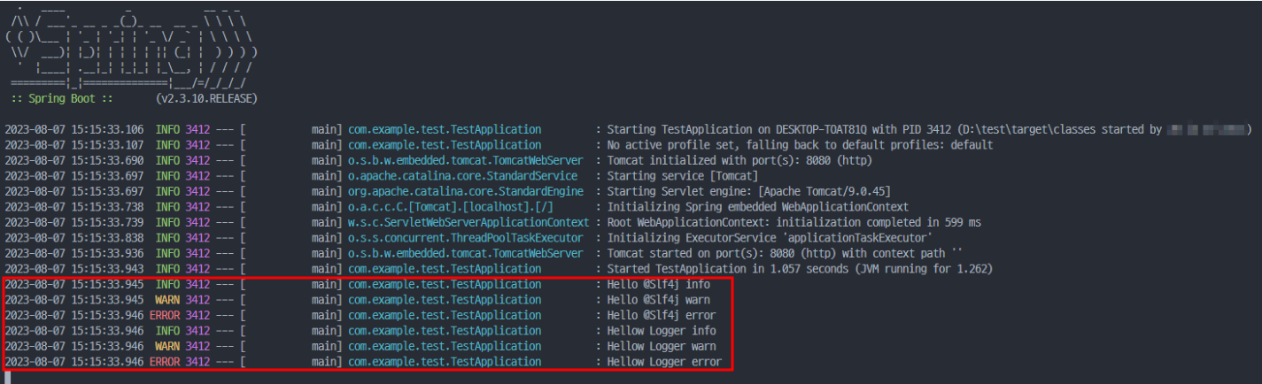 - Spring Boot는 SLF4J + Logback을 사용